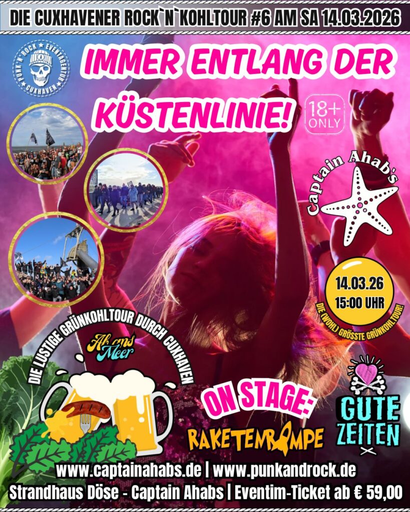 Freunde der Pop & Rockmusik sowie der Grünkohlzeit sind herzlich eingeladen an dieser außergewöhnlichen Tour teilzunehmen. Es geht mit bester Laune immer entlang der Küstenlinie.