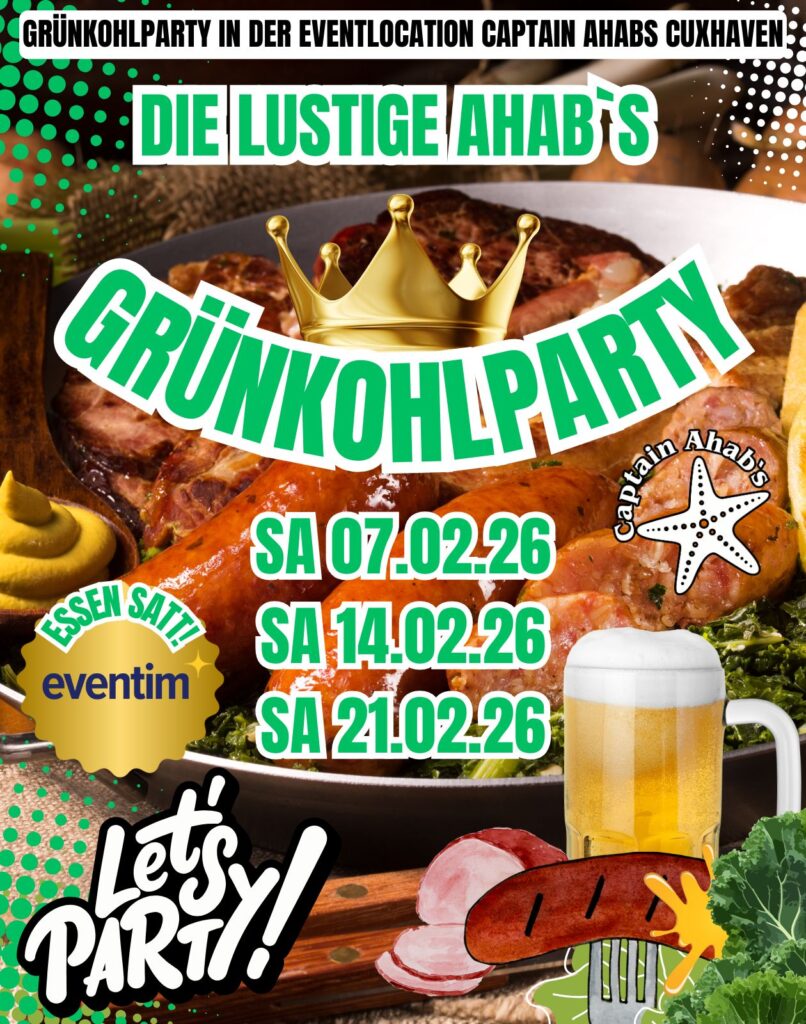 Der Marsch endet gegen ca. 17:30 Uhr im Captain Ahab’s Saal, dort gibt es ab ca. 18:00 Uhr ein tolles Grünkohl-Buffet mit allem was dazu gehört und anschließend rocken 2 Live-Bands.