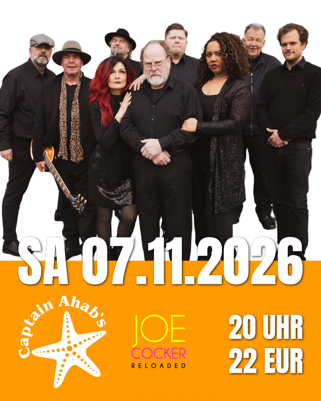 Das Captain Ahab’s Eventlocation stellt den Veranstaltungsort zur Verfügung, ist jedoch nicht der Veranstalter aller hier gezeigten Events. Einige Termine finden in Kooperation mit externen Veranstaltern statt. Weitere Infos entnehmt bitte den beigefügten Links.
