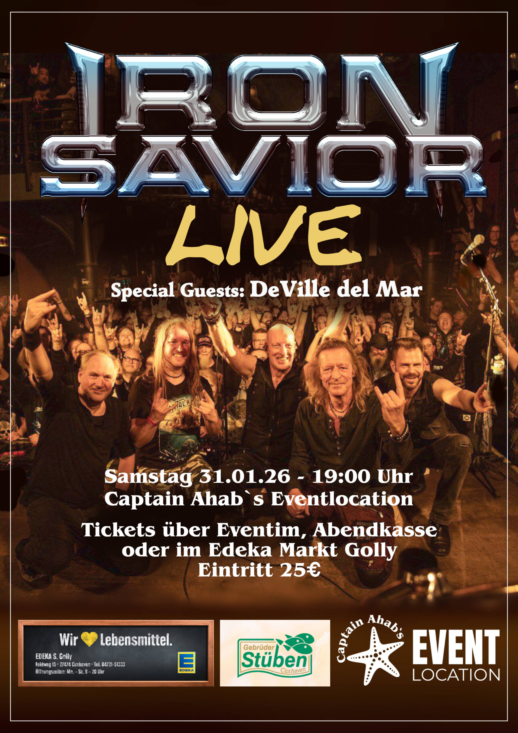 Am 31.01.2026 ist es soweit: Die Power-Metal-Legende IRON SAVIOR entert die Bühne im Captain Ahab’s!