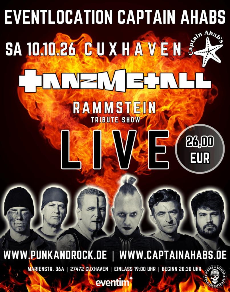 Captain Ahab’s Eventlocation stellt den Veranstaltungsort zur Verfügung, ist jedoch nicht der Veranstalter aller hier gezeigten Events. Einige Termine finden in Kooperation mit externen Veranstaltern und Partnern statt. Weitere Infos entnehmt bitte den beigefügten Links.
